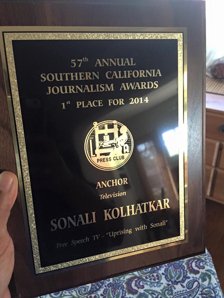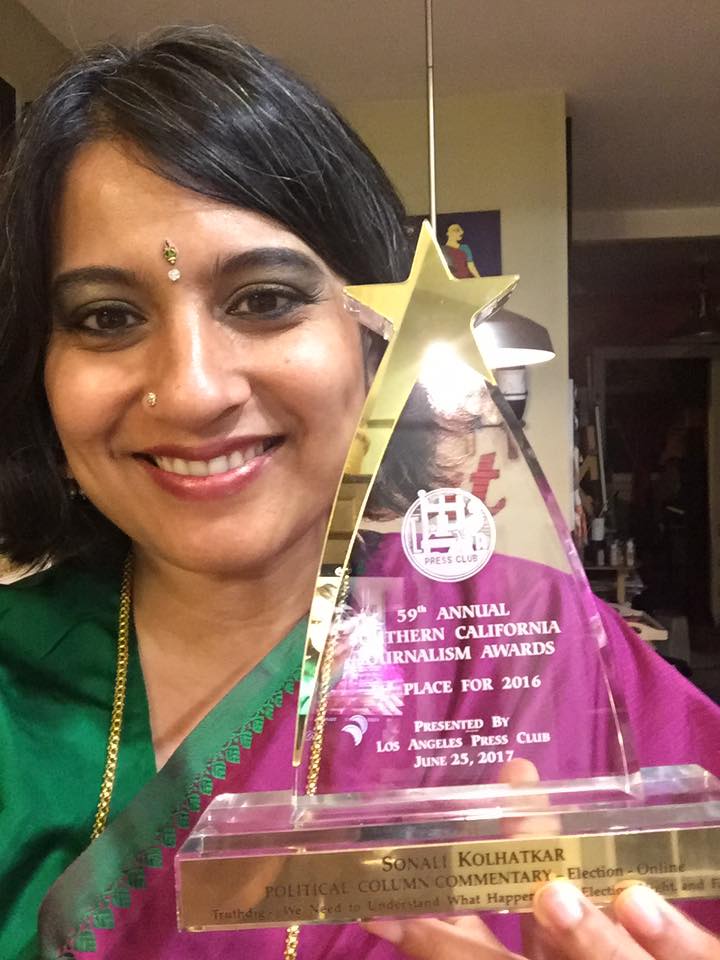 She also won Best Election Commentary (2016) for her Truthdig essay, "We Need to Understand What Happened on Election Night, and Fast." LA Press Club judges wrote, "Kolhatkar’s sobering analysis of Trump’s election win framed by an explanation of it to her young child is an excellent piece of political commentary."