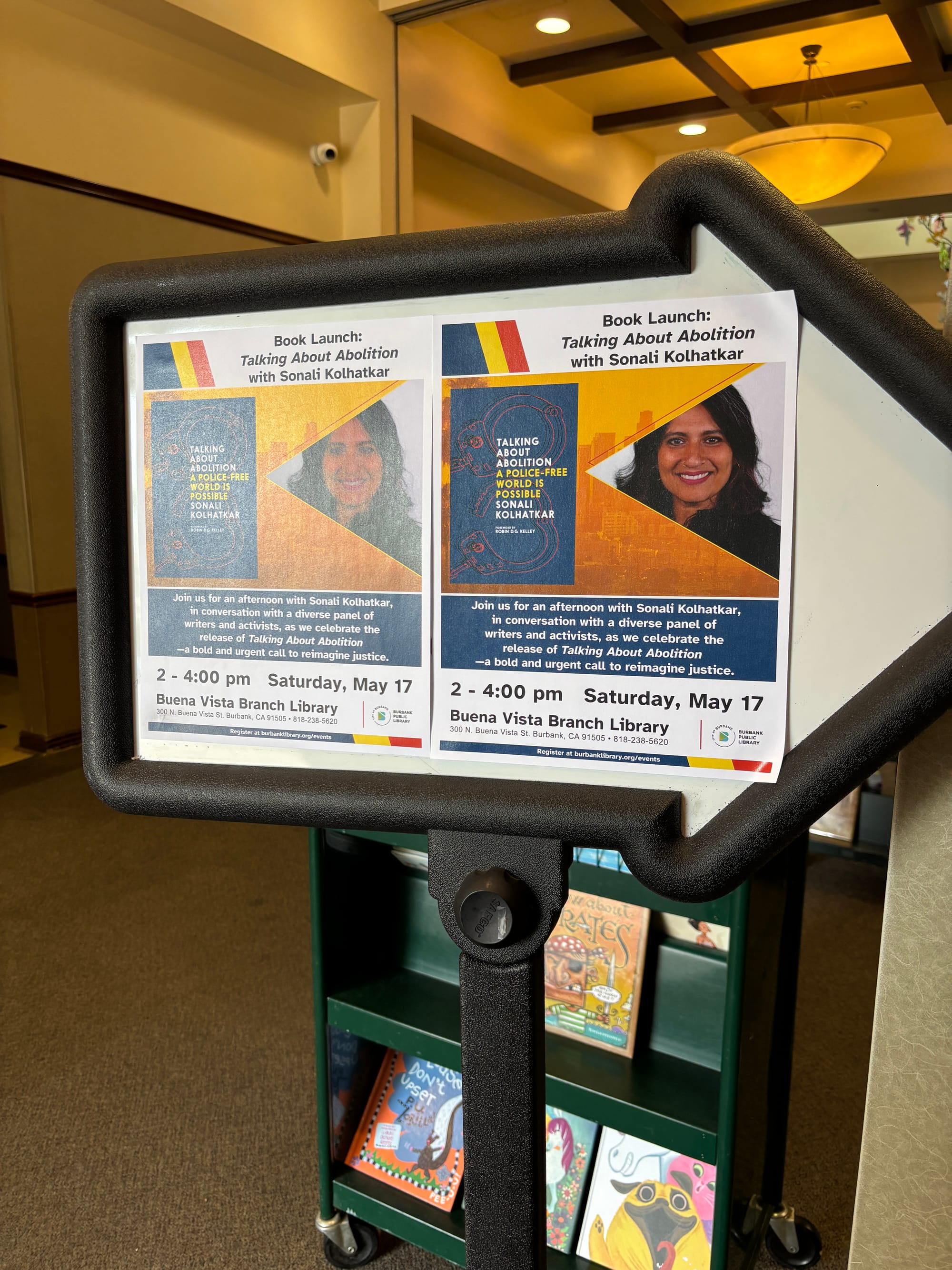 A brilliant woman who was at my Los Angeles book launch event for my latest book Talking About Abolition this past Saturday at the Burbank Public Library, dropped some wisdom at me. Tabatha Jones Jolivet, an academic and activist, suggested I think of it as going “interdependent” rather than “independent.” After all, I don’t have generational wealth to work for free, and so when I ask those who rely on my program, Rising Up With Sonali, to donate a mere $4 a month, I am requesting we enter into an interdependent relationship.