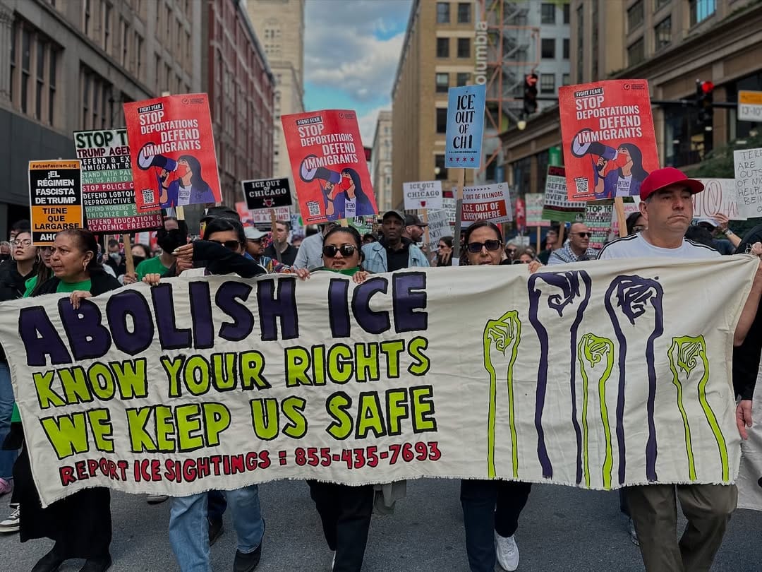 The very real news of Chicagoans mobilizing against Trump's planned invasion was heartening. A mass protest through the city organized by the Illinois Coalition for Immigrant and Refugee Rights (ICIRR) drew thousands of people. But mass protests alone aren't going to cut it.